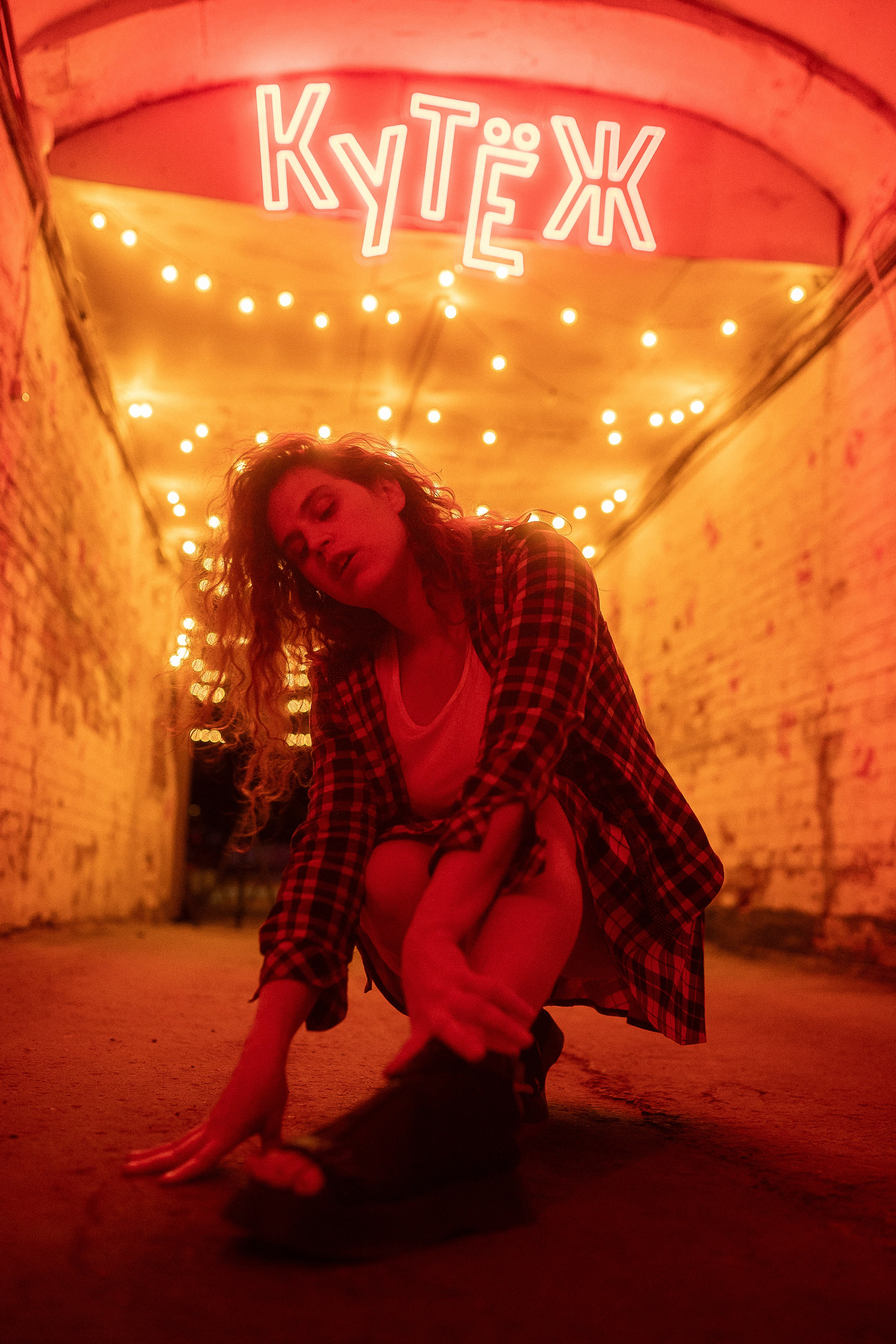 Я изучил странички в Наташиных соцсетях, чтобы предложить ей сделать такие фотографии, которых у неё ещё не было. Из трёх идей мы выбрали стилистику ночного города. Чтобы в процессе фотосессии не тратить время на поиск локаций, за неделю до съёмки я съездил в центр и подыскал подходящие места с городской иллюминацией, которая красиво смотрятся в кадре.